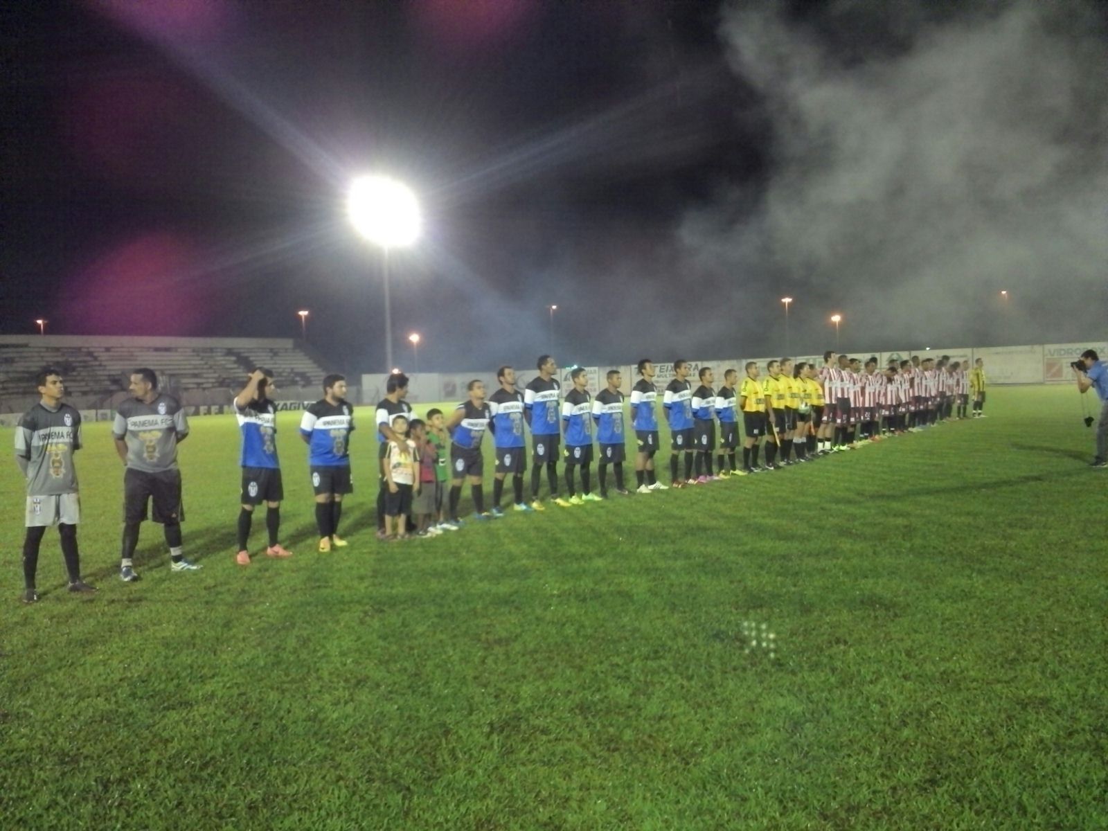 Aos 16 minutos o Arapuá pressionou mais e teve uma boa chance de gol, mas foi a vez do goleiro do Novo Ipanema brilhar e fazer uma grande defesa.O técnico do Novo Ipanema resolveu então mexer na equipe tirando o camisa 2 e colocando em seu lugar o camisa 20 Marquinhos,a equipe se apresentava em desvantagem por não ter 5 de seus titulares.