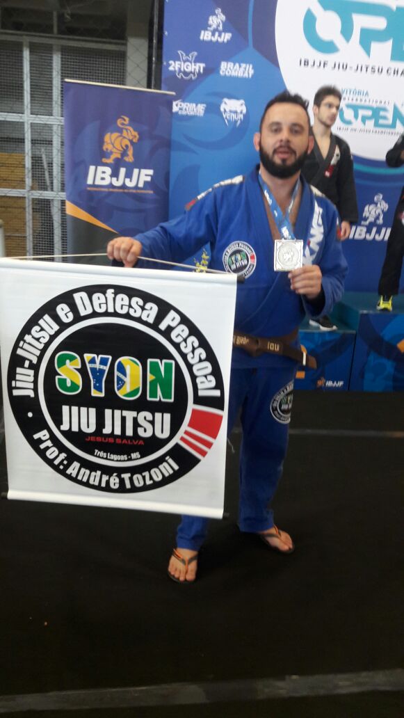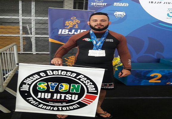 O atleta Rafael Bispo da equipe SYON jiu-jítsu de Três Lagoas, coordenada pelo professor André Tozoni, conquistou no último final de semana 05 e 06/08, dois vice-campeonatos no Vitória Internacional Open de Jiu-jítsu, na categoria máster 1 pesado, faixa marrom, com quimono e sem quimono.