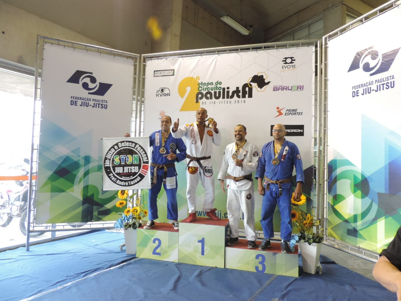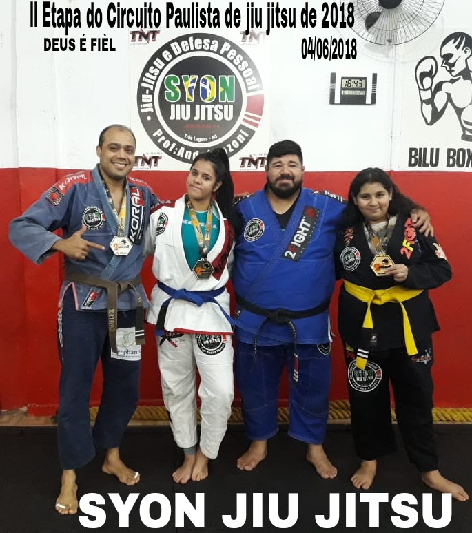 A equipe SYON JIU JITSU, participou da competição com 5 atletas que conquistaram 3 medalhas, sendo 1 de ouro, 1 de prata e 1 de bronze.
