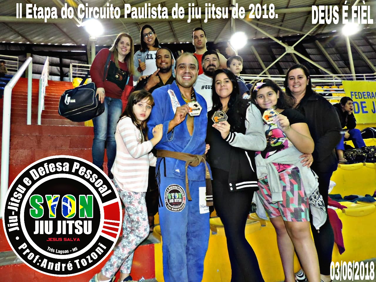 O professor André Tozoni agradece aos atletas que participaram e não mediram esforços para estarem lá e a toda Equipe SYON JIU JITSU pelo apoio e incentivo. Que DEUS vos abençoe sempre.