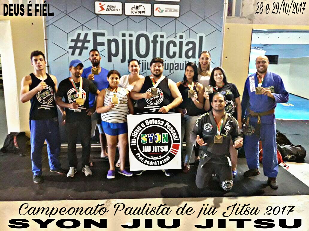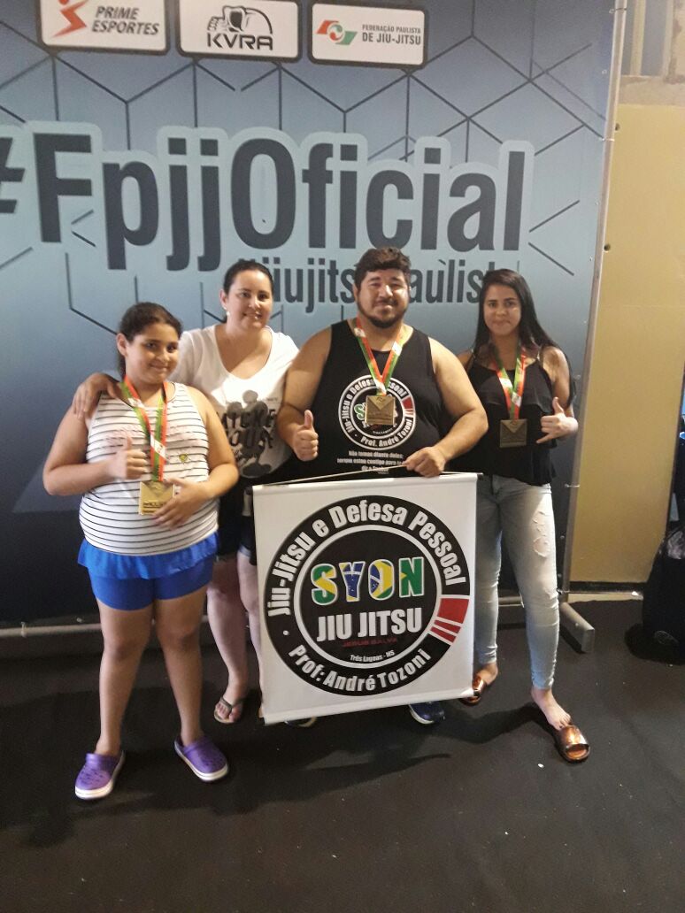 A equipe SYON JIU JITSU, participou da competição com 12 atletas que conquistaram um total de 9 medalhas, sendo 02 de ouro, 2 de prata e 5 de bronze.