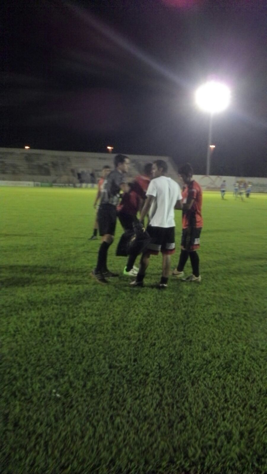 Aos dez minutos do segundo tempo o jogador do Arapuá sofreu um pênalti por parte do goleiro do time adversário, mas o juiz disse que não houve nada, o que gerou muita reclamação por parte dos atletas do time do Arapuá.
